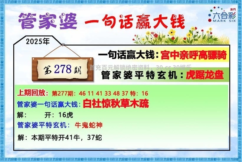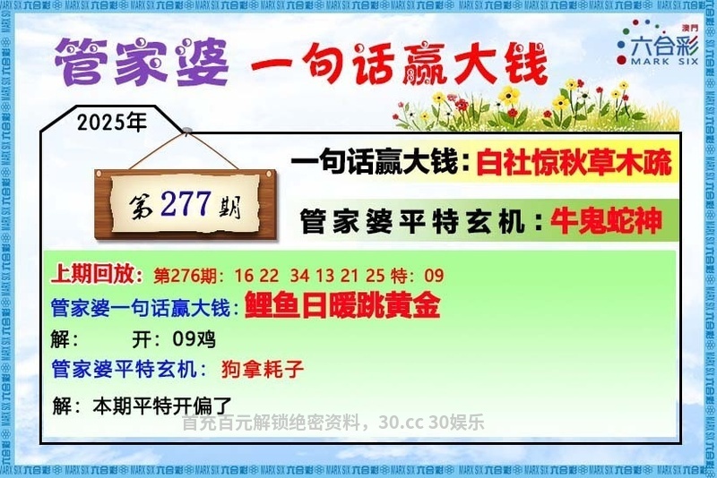 276期:家野两肖【野兽+鸡马】开鸡09准 | |