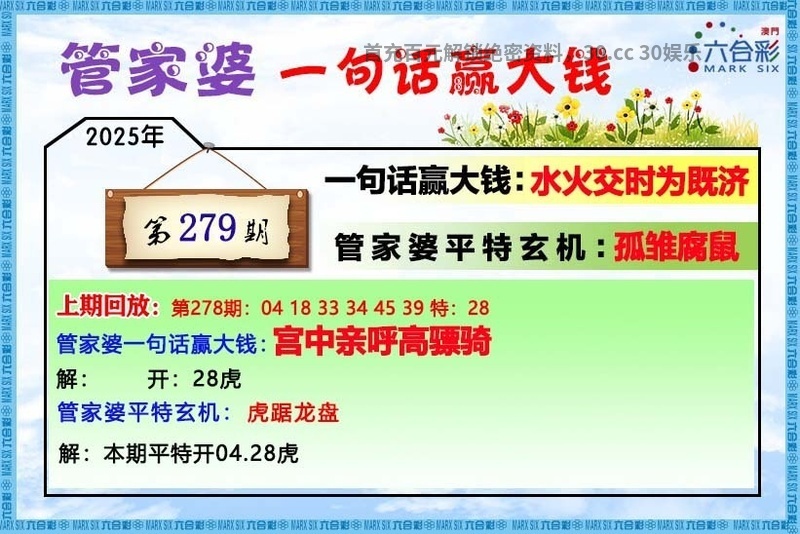 278期:家野两肖【野兽+猪马】开虎28准 | |